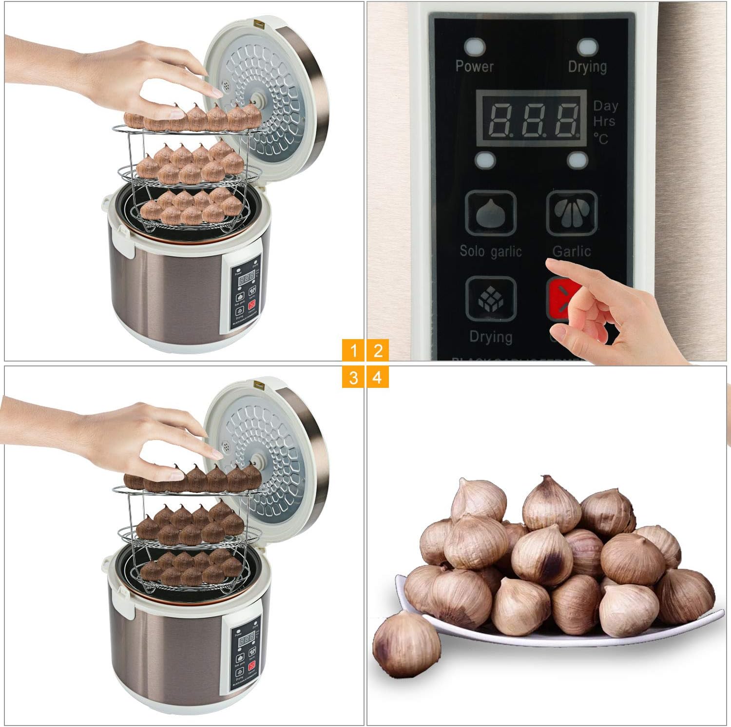 - ✅Easy to Operate: Our full automatic intelligent control black garlic maker is easy to operate. Simply press the ""Cancel"" button for 3 seconds to enter the program setting mode. Then, select the ""Garlic"" or ""Solo Garlic"" button based on your preference (continuous pressing allows you to choose the fermentation time). The machine will start working once you hear a ""drip"" sound. Upon completion of fermentation, the machine will automatically power off and emit a beep to indicate finished.