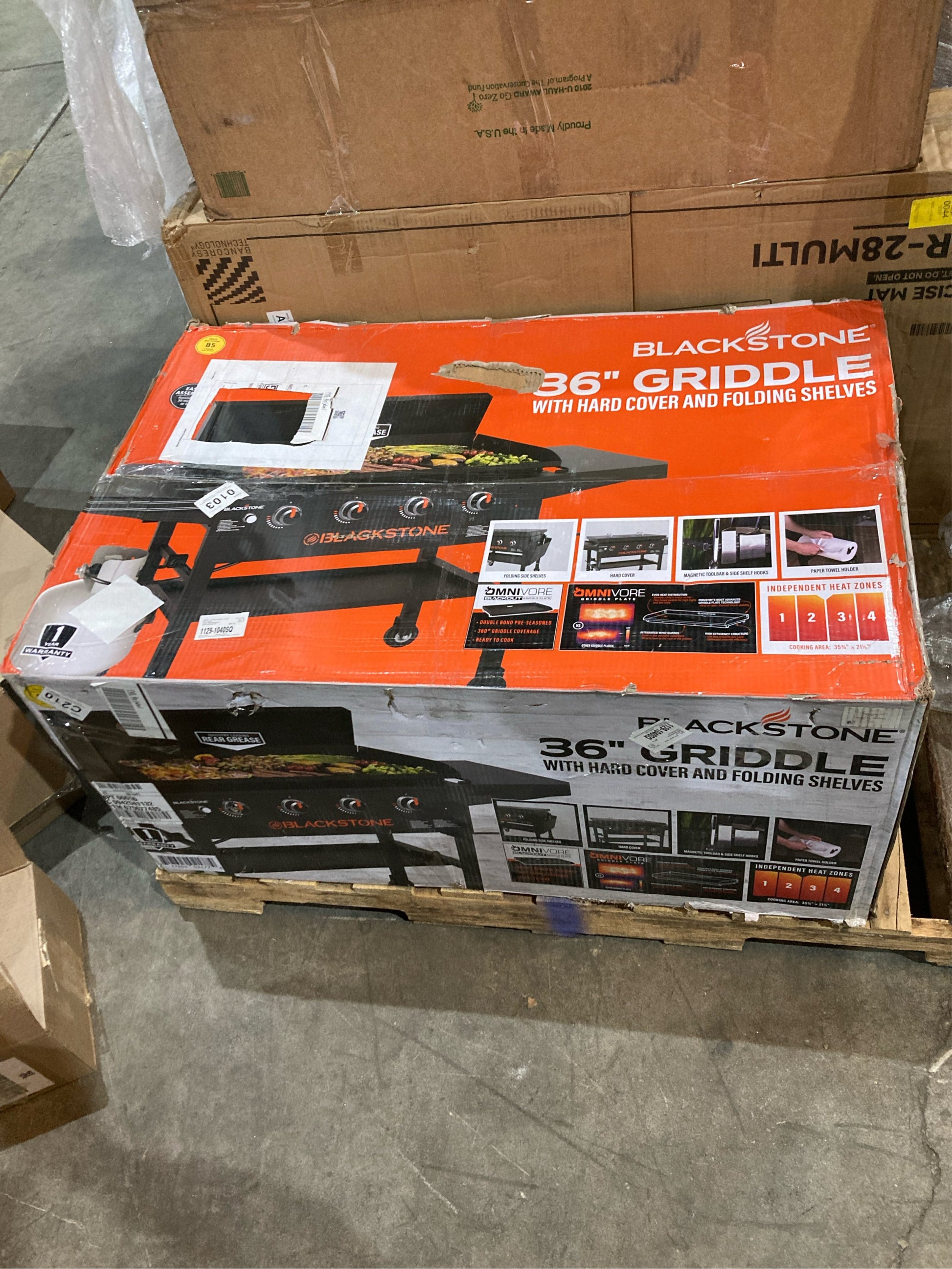 ntroducing the Omni griddle plate, a redesigned griddle plate with best-in-class thermal stability, the most even heat distribution, built-in wind guards, and optimized propane efficiency Model # 2177 Two side shelves Convenient paper towel holder Four industrial strength wheels Side shelf hooks for griddle tools Rear grease management system Rolled steel griddle top Magnetic tool bar for easy access 756-square-inch cooktop surface Assembled dimensions: 66.52" L x 27.56" W x 38.48" H 38,000 BTUs Four independently controlled cooking zones NOTE: NOT compatible with the current Blackstone natural gas conversion kit. Stainless steel tube burners