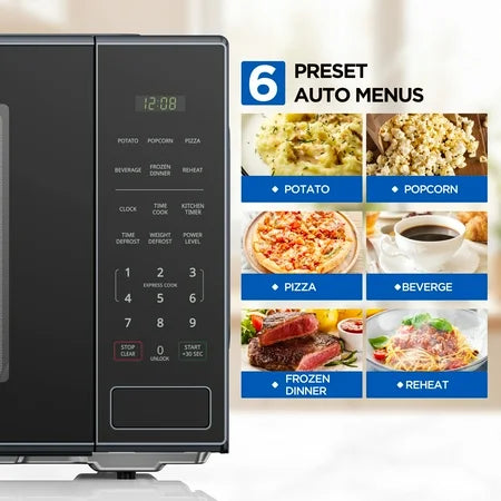 Mainstays 2.2 cu ft Countertop Microwave Oven in Platic Spacious 2.2 cubic feet capacity for cooking or reheating large meals Weight and time defrost options for easy defrosting of food 30-second one-touch option for quick and convenient cooking Six express-cook buttons for added convenience Child safety lock for enhanced safety
