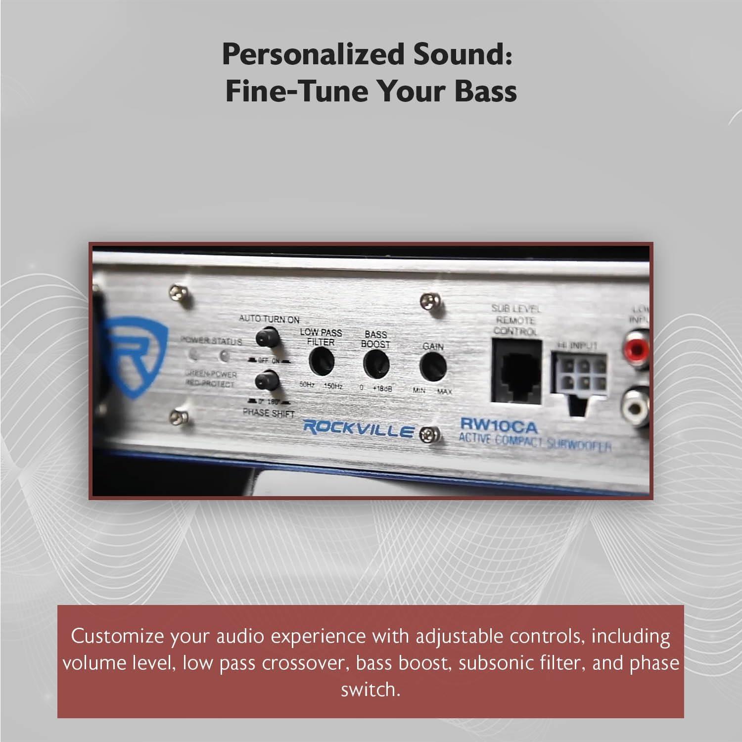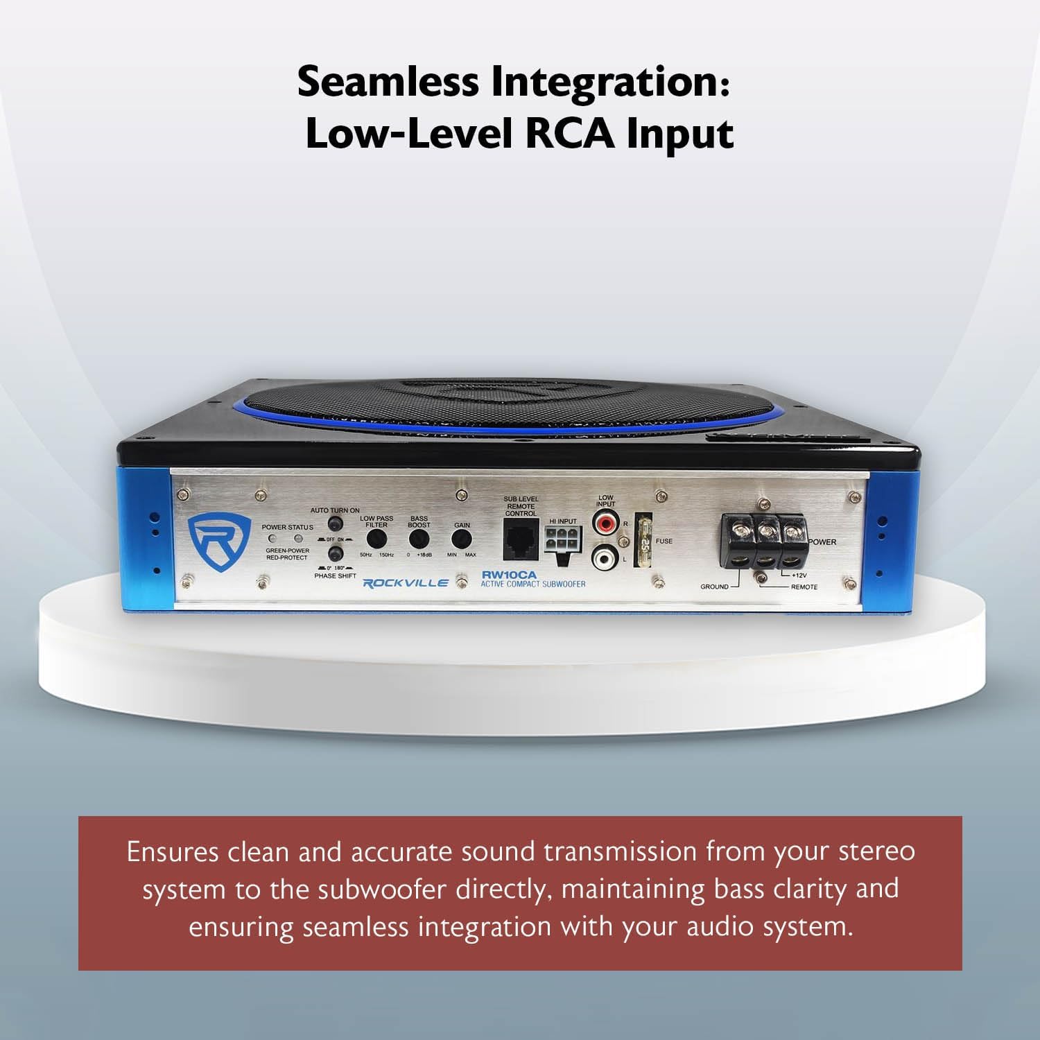 Rockville RW10CA 10" 800 Watt Slim Low Profile Active Powered Car Subwoofer Sub, Black