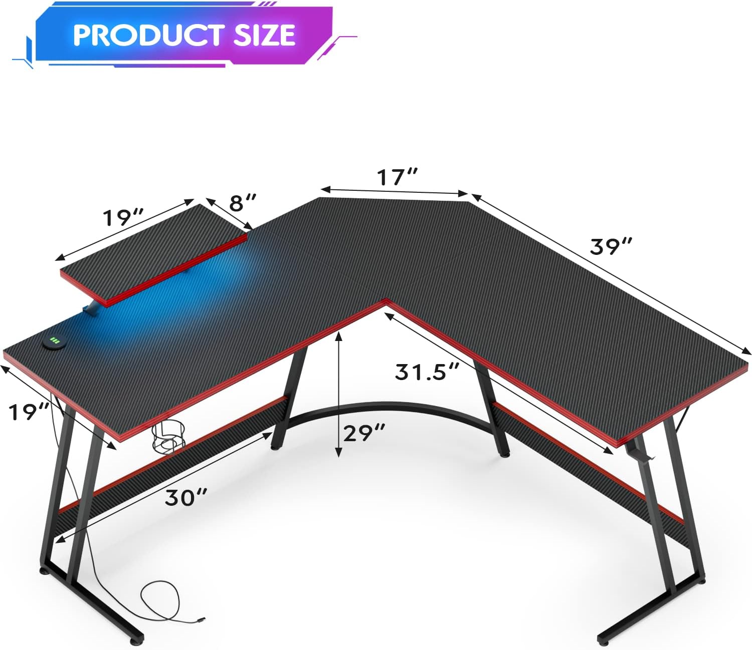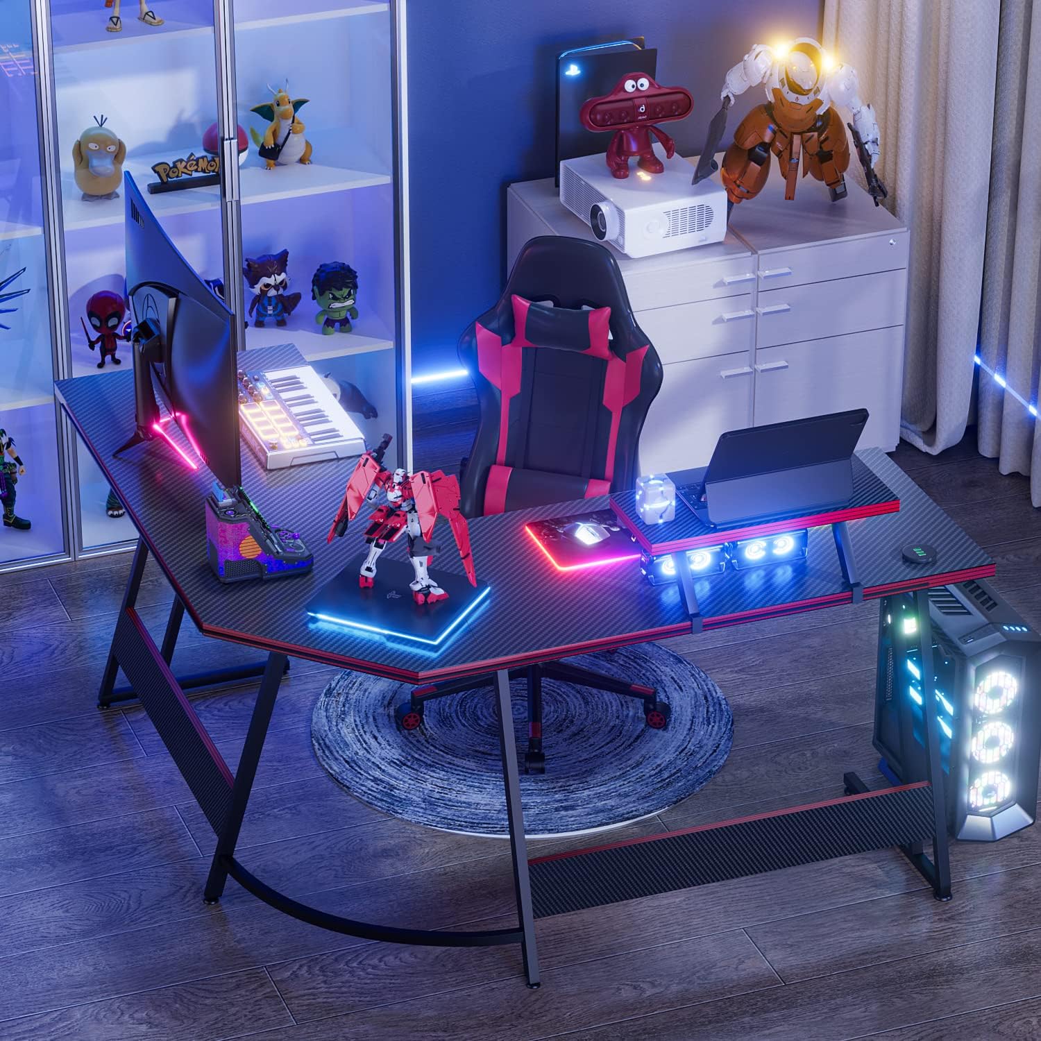 Shahoo L Shaped Gaming Desk with LED Lights & Power Outlet