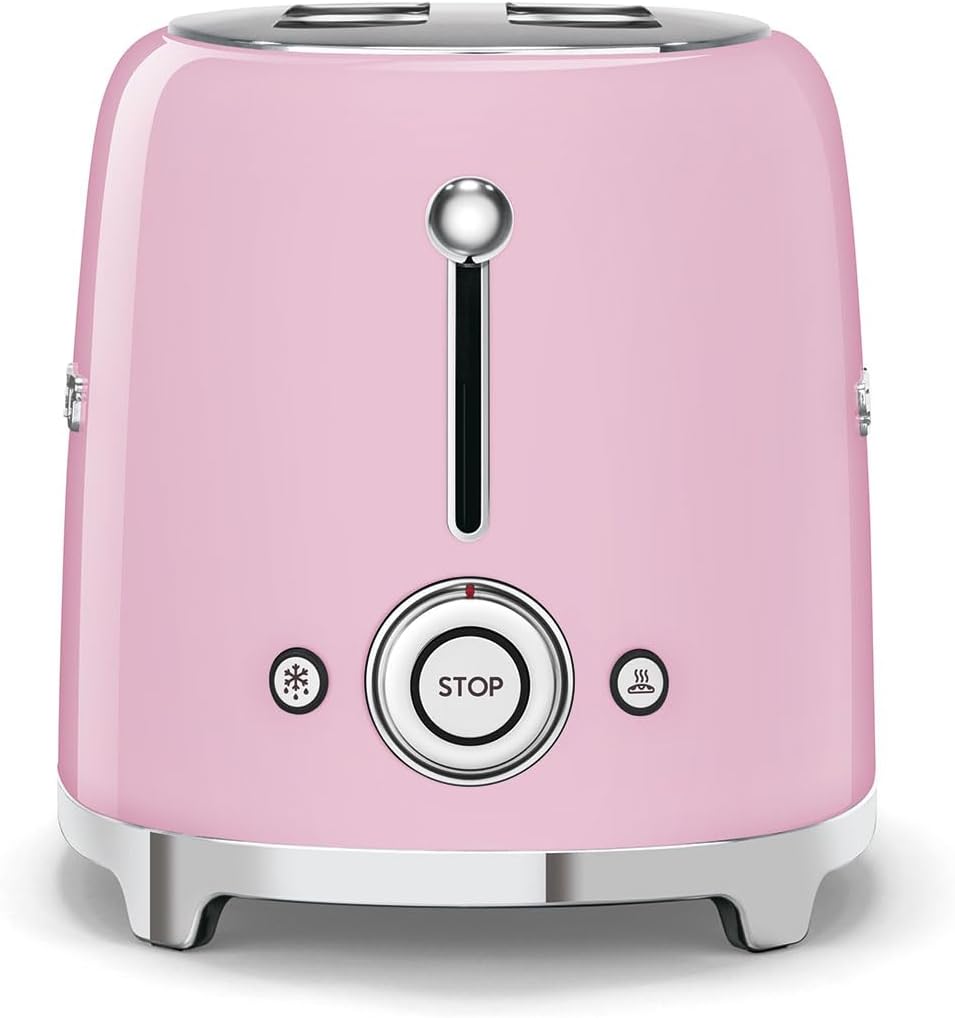 SMEG 2 Slice Toaster with 6 Presets and Defrost Function and Removable Crumb Tray TSF01PKMUS, Pink