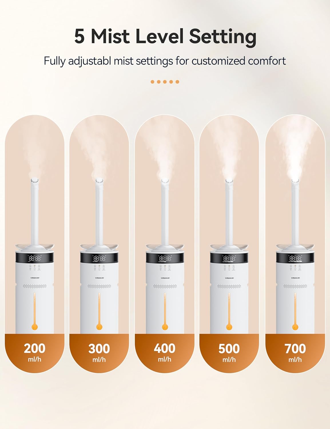 - Customized Comfortable Humidity: Enjoy 5 mist level adjustment modes, 2 different mist outlets, and a 360° rotating nozzle that gives you full control over the direction of the mist flow, allowing for personalized adjustments based on your needs.